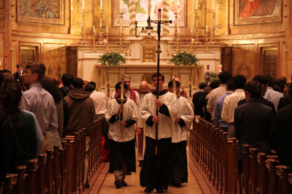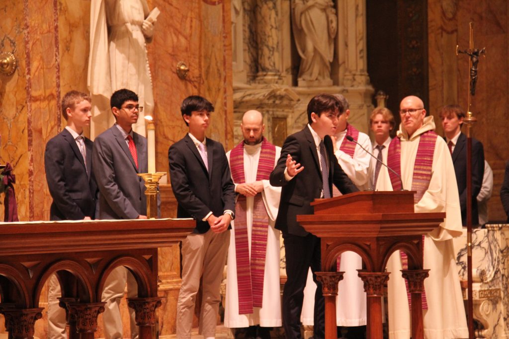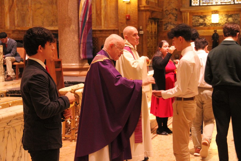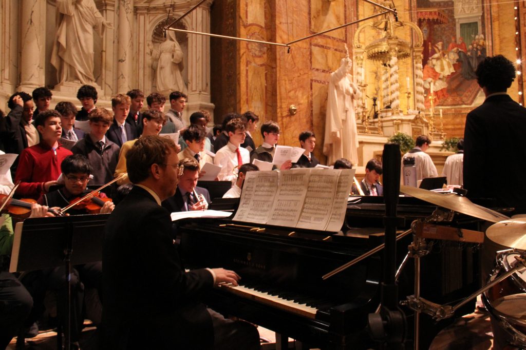Regis's Liturgical Music Club, along with Music Director Mr. Jacob Elkin, provided music for the Mass, leading our community in Christmas songs such as "O Come, O Come, Emmanuel" and "Silent Night."